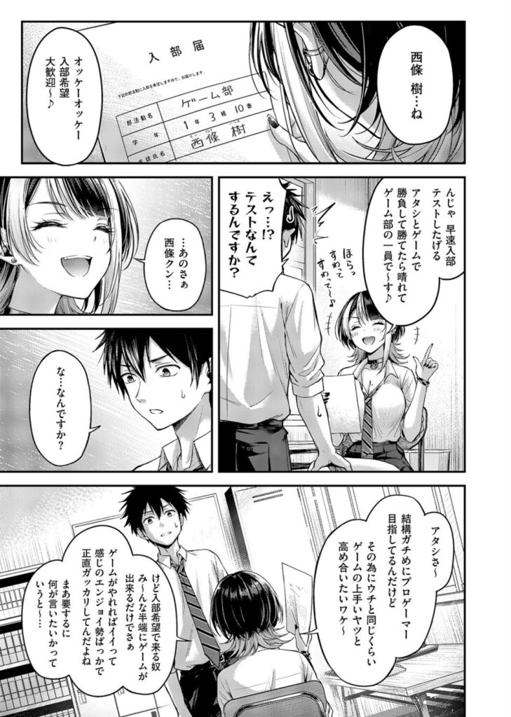 格ゲー好きの主人公・樹がゲーム部を訪れると、そこには「雑魚はお断り」と言い放つ超生意気な巨乳部長・蓮が。入部を懸けたガチンコ対戦が始まりますが、蓮は勝利のために「自らの胸を見せつける」という掟破りのリアル・デバフを仕掛けてきて……!?